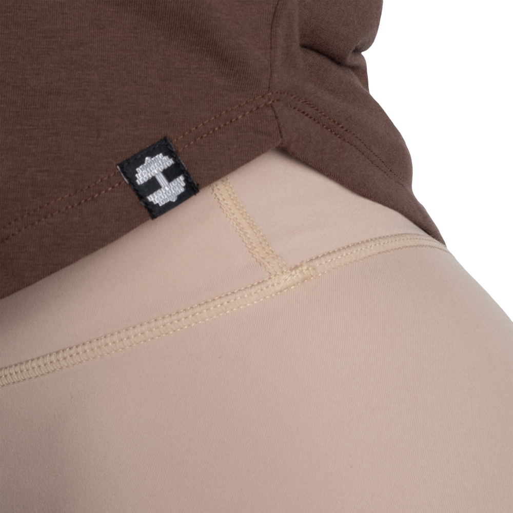 特徴:柔らかな手触り、優れた伸縮性、胸元とネックラインにミニマルなプリント
