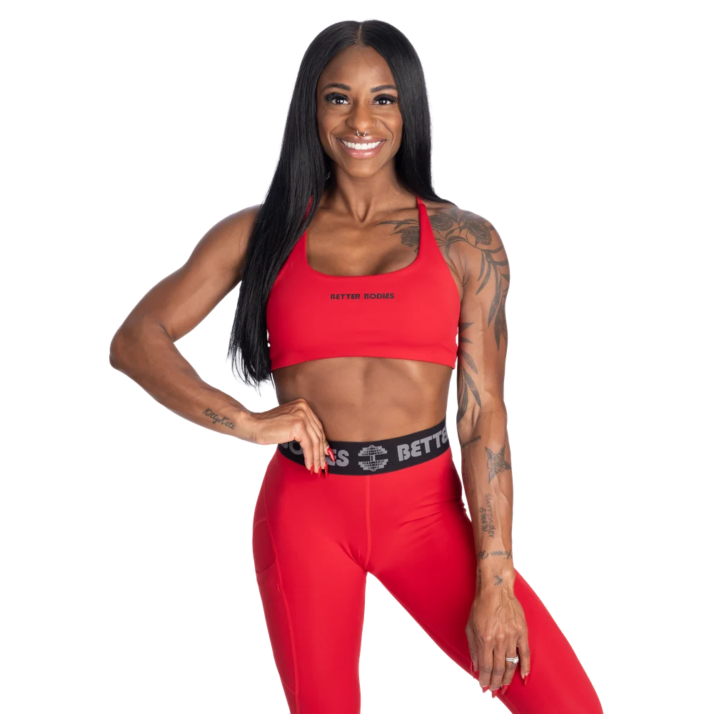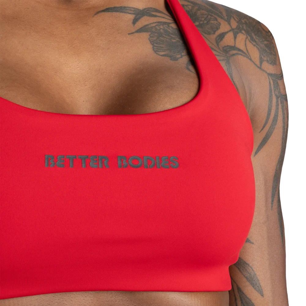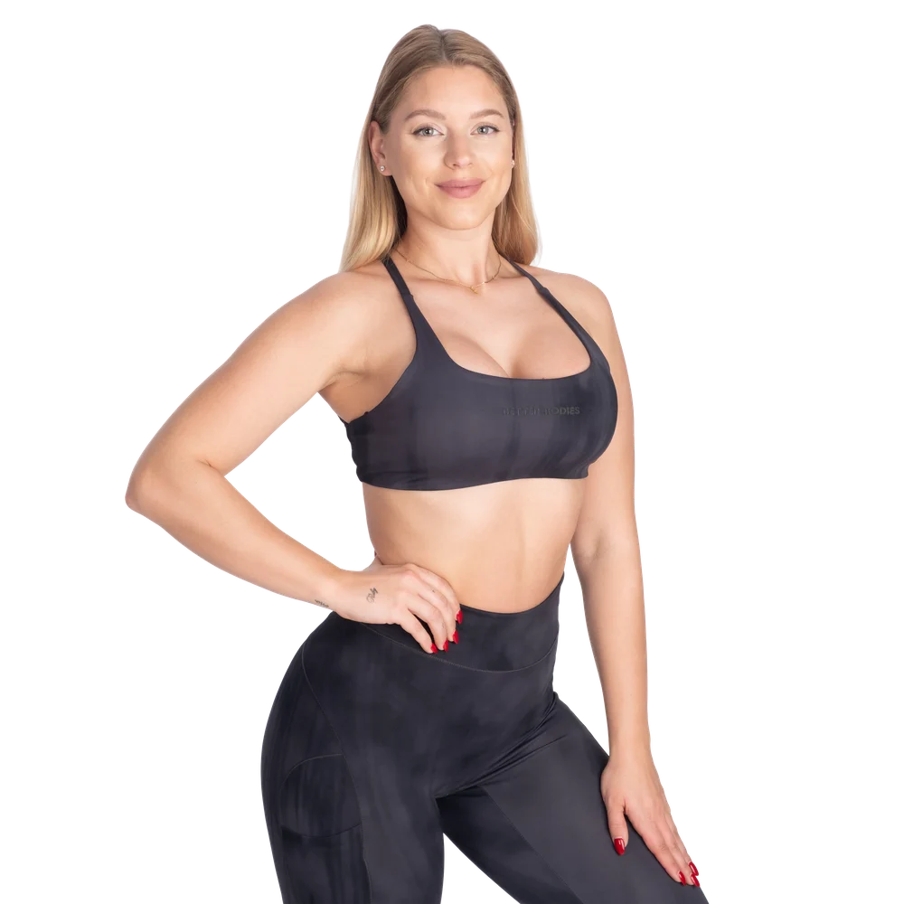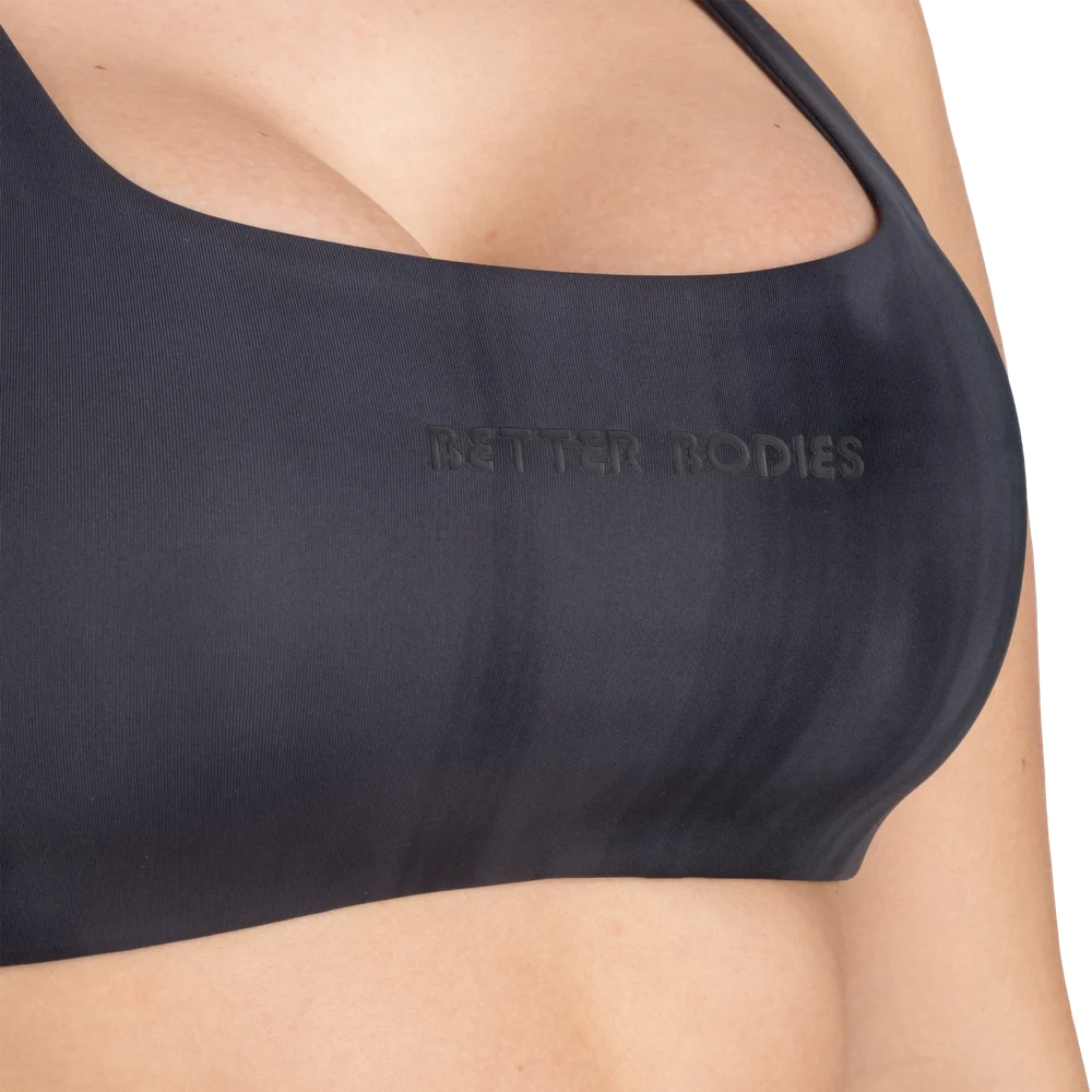 特徴:吸湿発散性に優れた高機能素材、調節可能なストラップ、取り外し可能なカップ、小さな「Better Bodies」プリント。