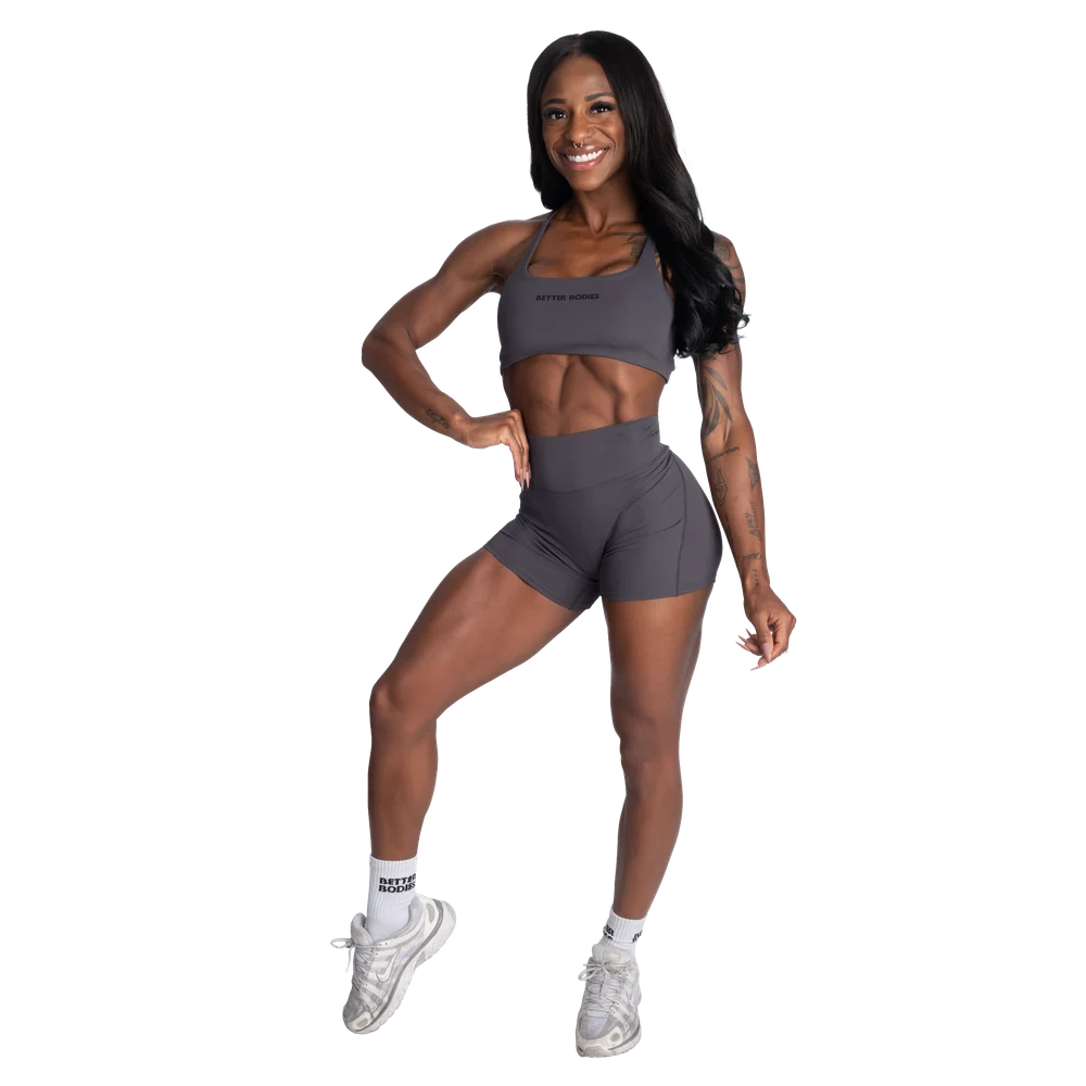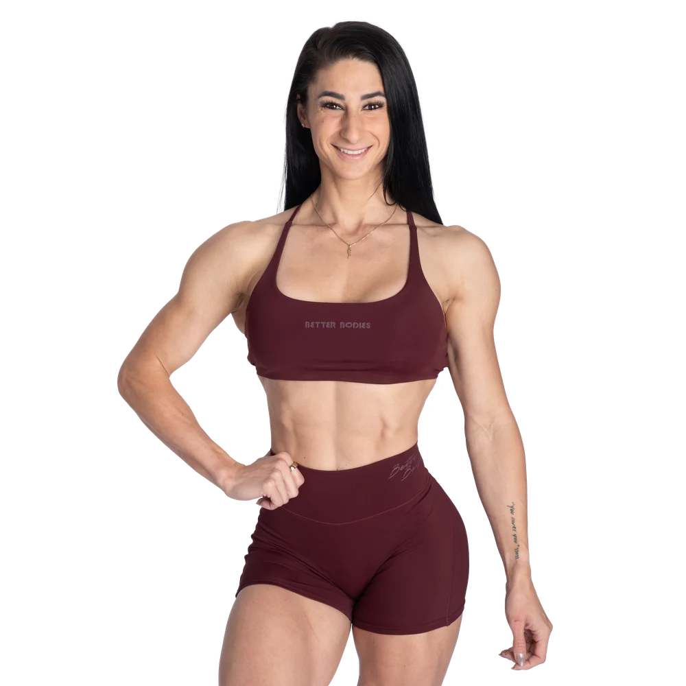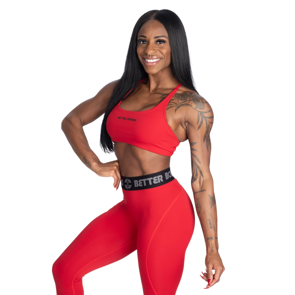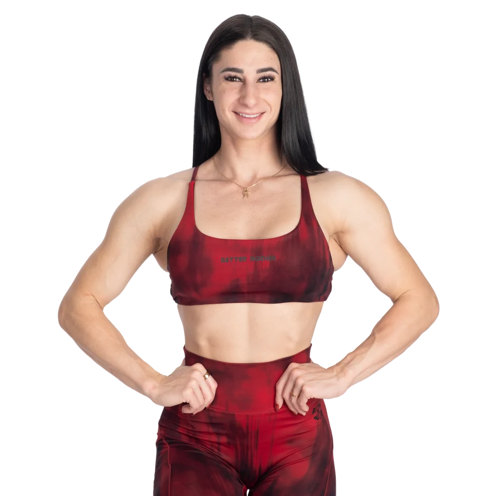 特徴:吸湿発散性に優れた高機能素材、調節可能なストラップ、取り外し可能なカップ、小さな「Better Bodies」プリント。