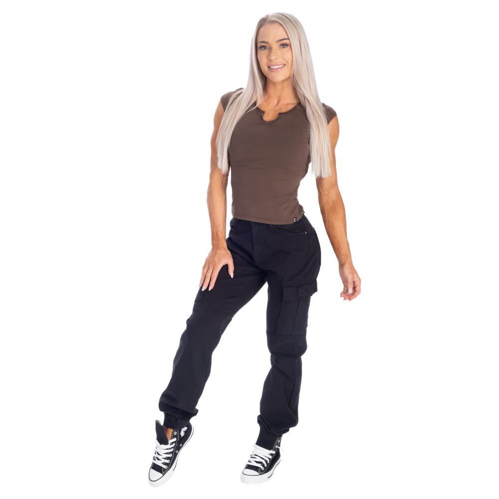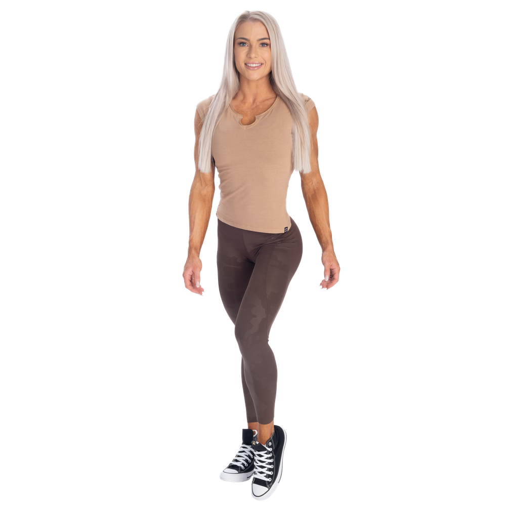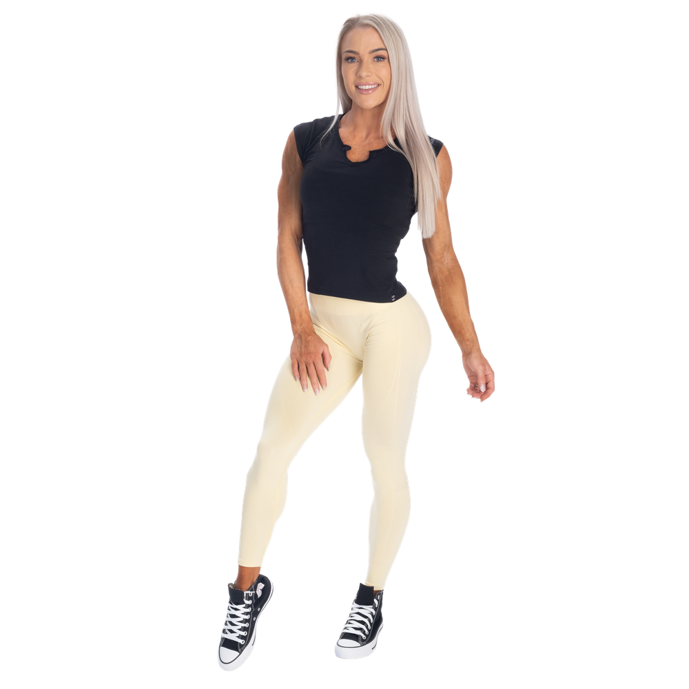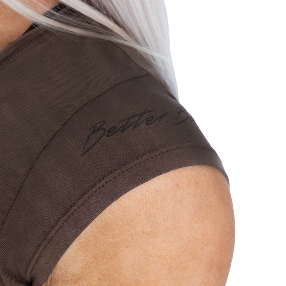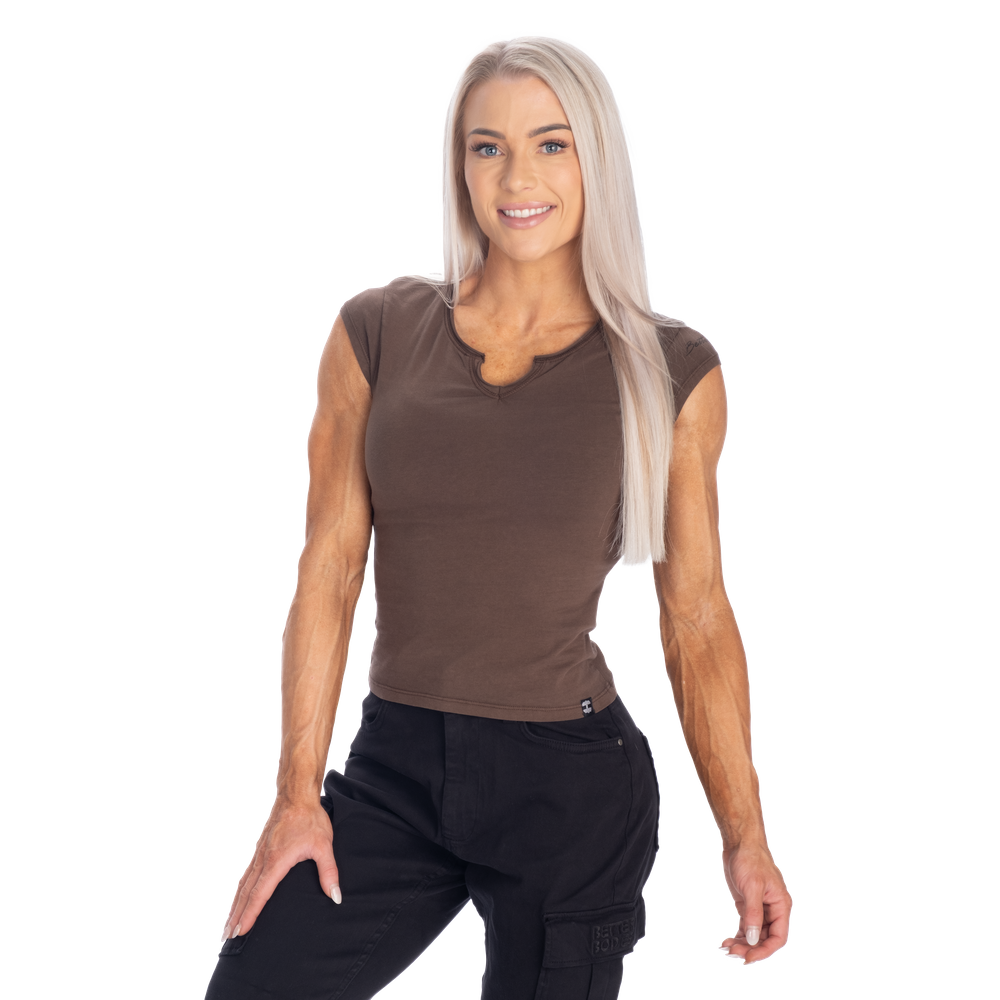 スリムフィットとセミクロップド丈で毎日のスタイルを美しく演出します。ネックラインの小さなV字ディテールとキャップスリーブが個性をプラス。袖のさりげないプリントがベターボディーズのアティチュード自信に満ち、力強く、ありのままの自分を表現しています。