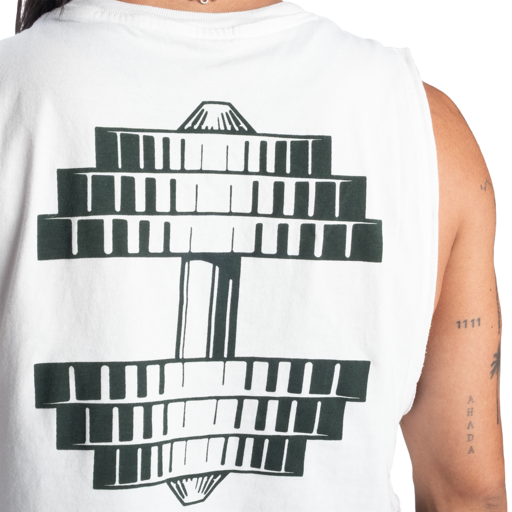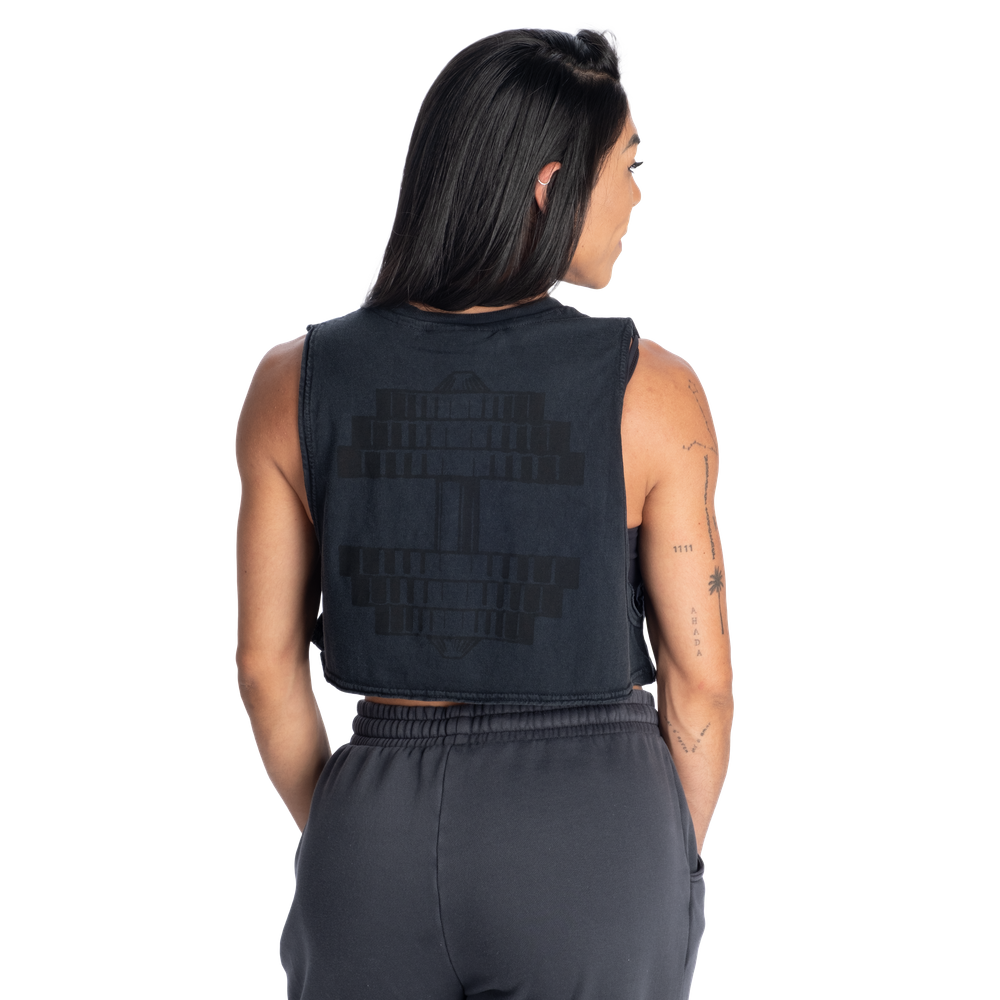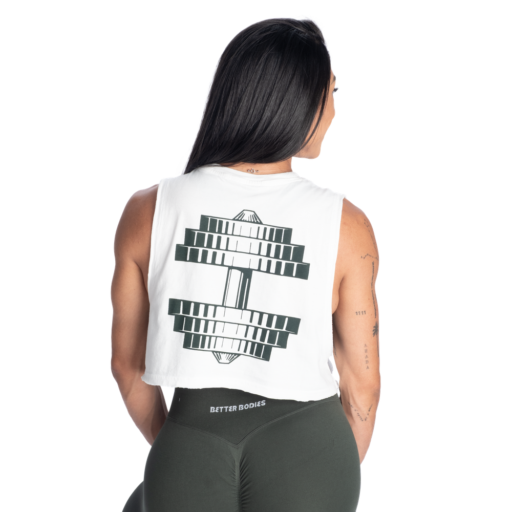 ゆったりとしたフィット感とオーバーサイズのクロップド丈で背面には大きなダンベルのグラフィック、フロントにはアイコニックなBetter Bodies New York 1982のロゴをあしらっています。
