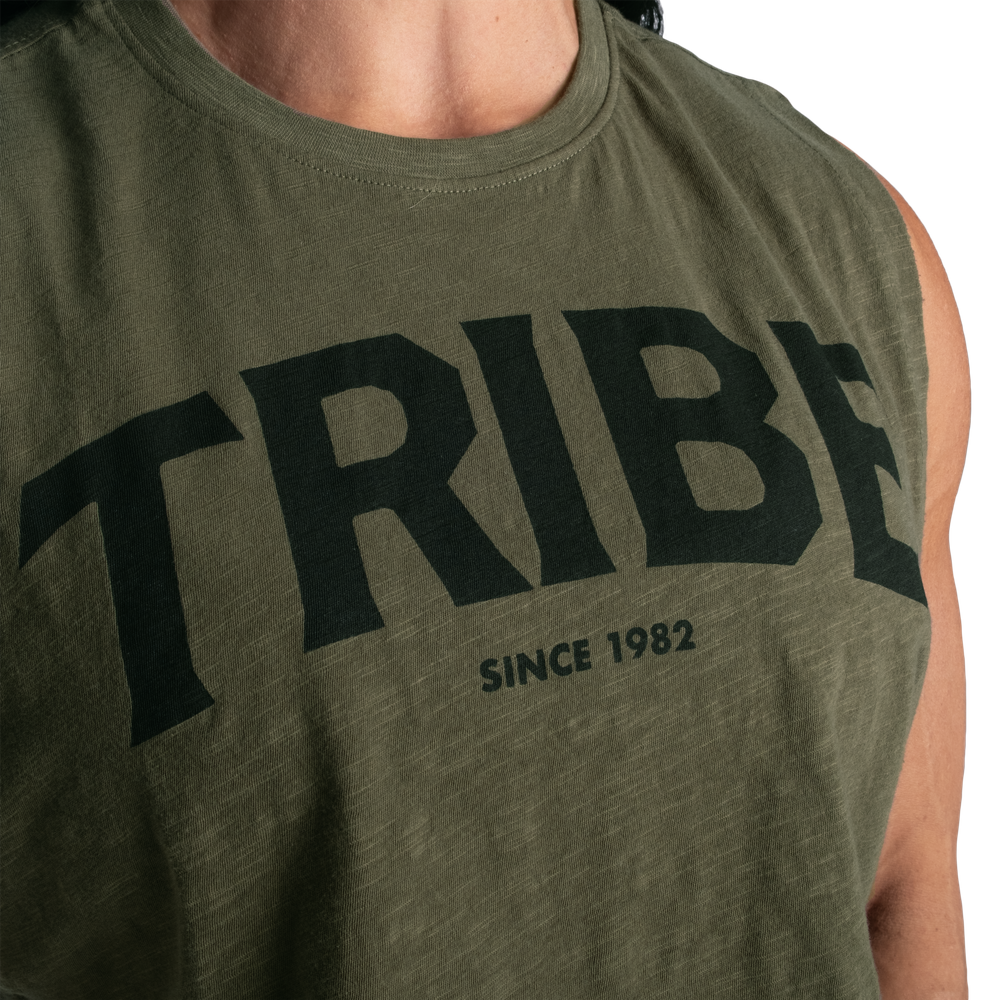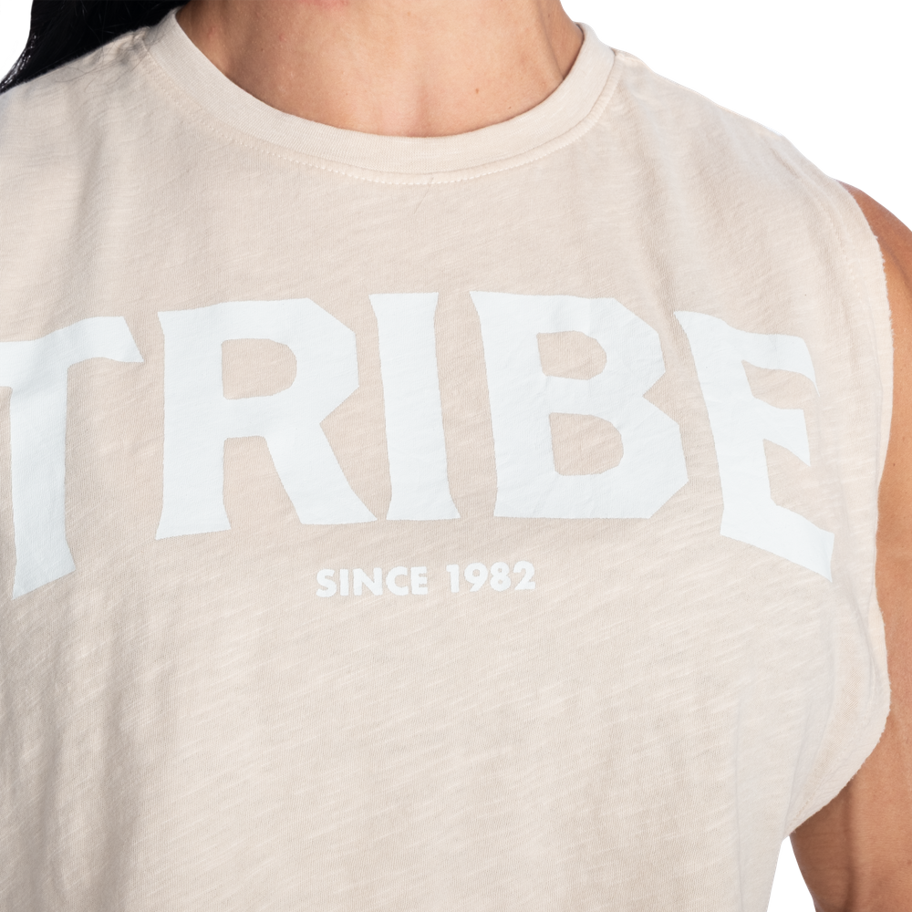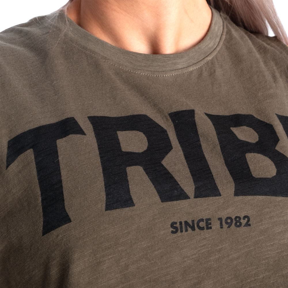特徴:切りっぱなしのクロップド丈、ゆったりとしたリラックスフィット、胸元にTRIBEプリント、ネック部分に小さなプリント