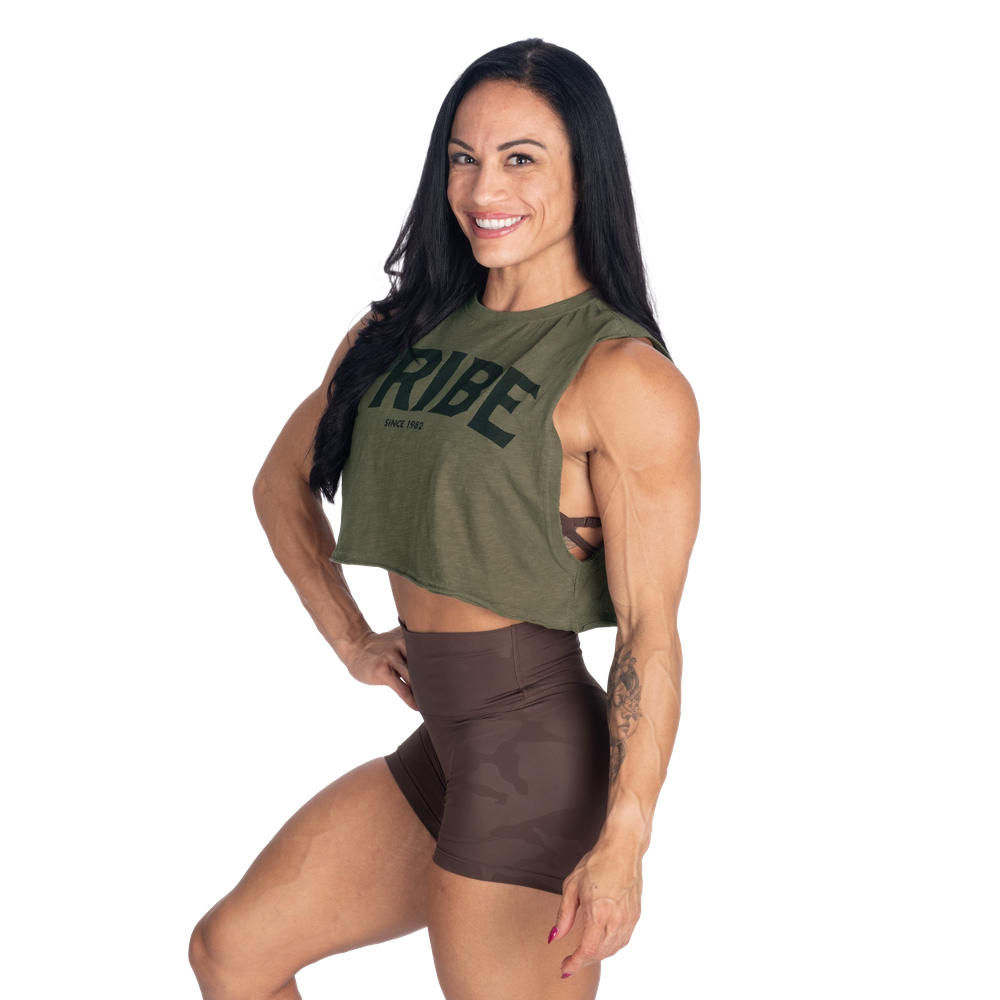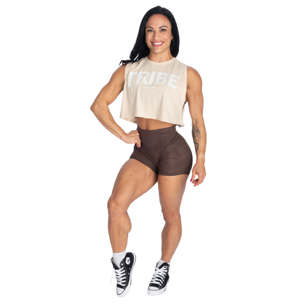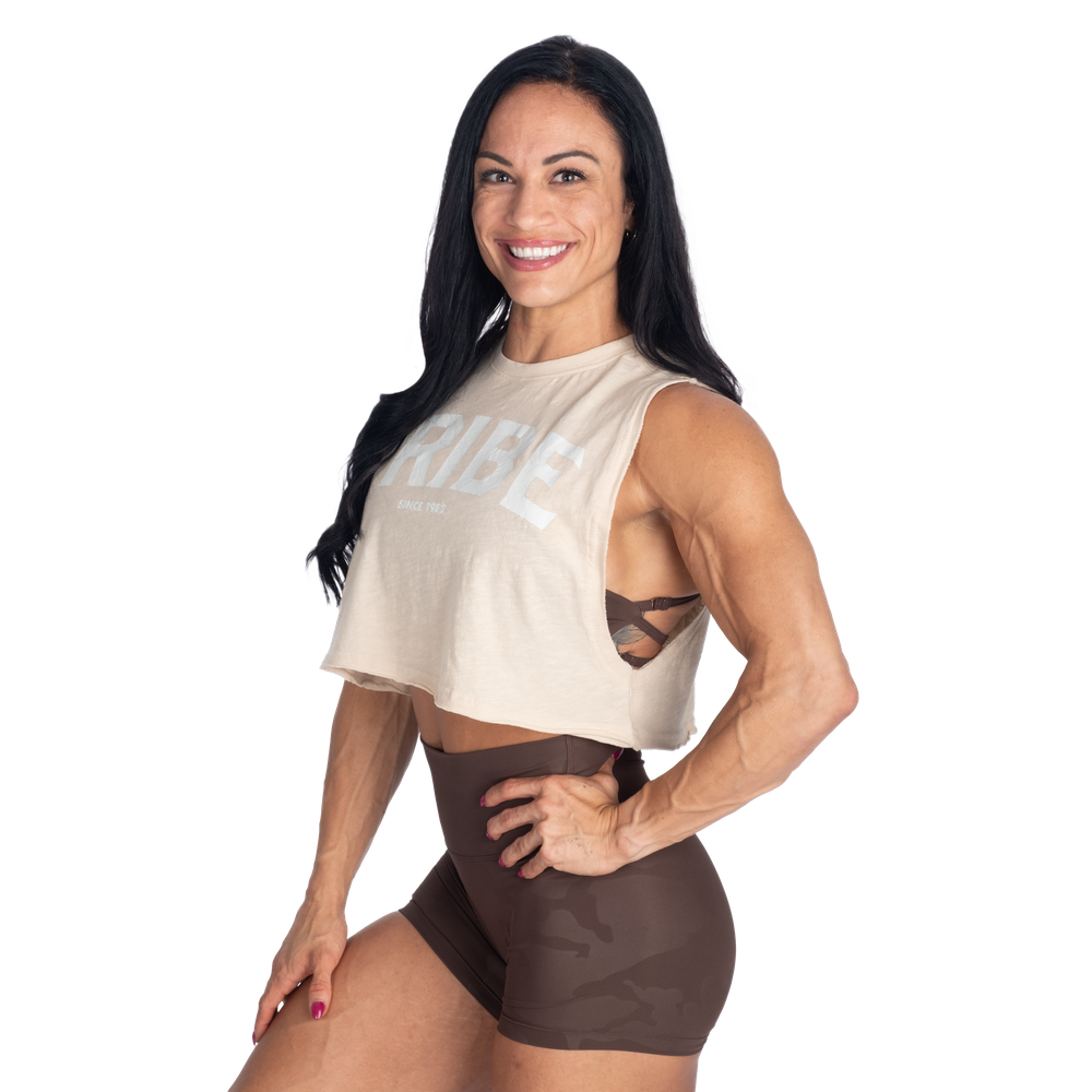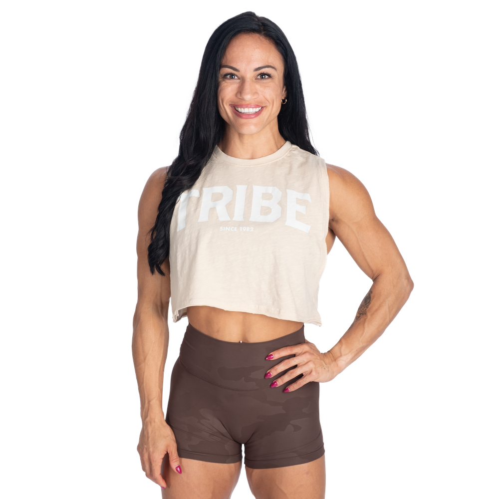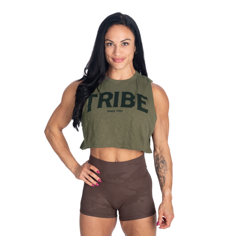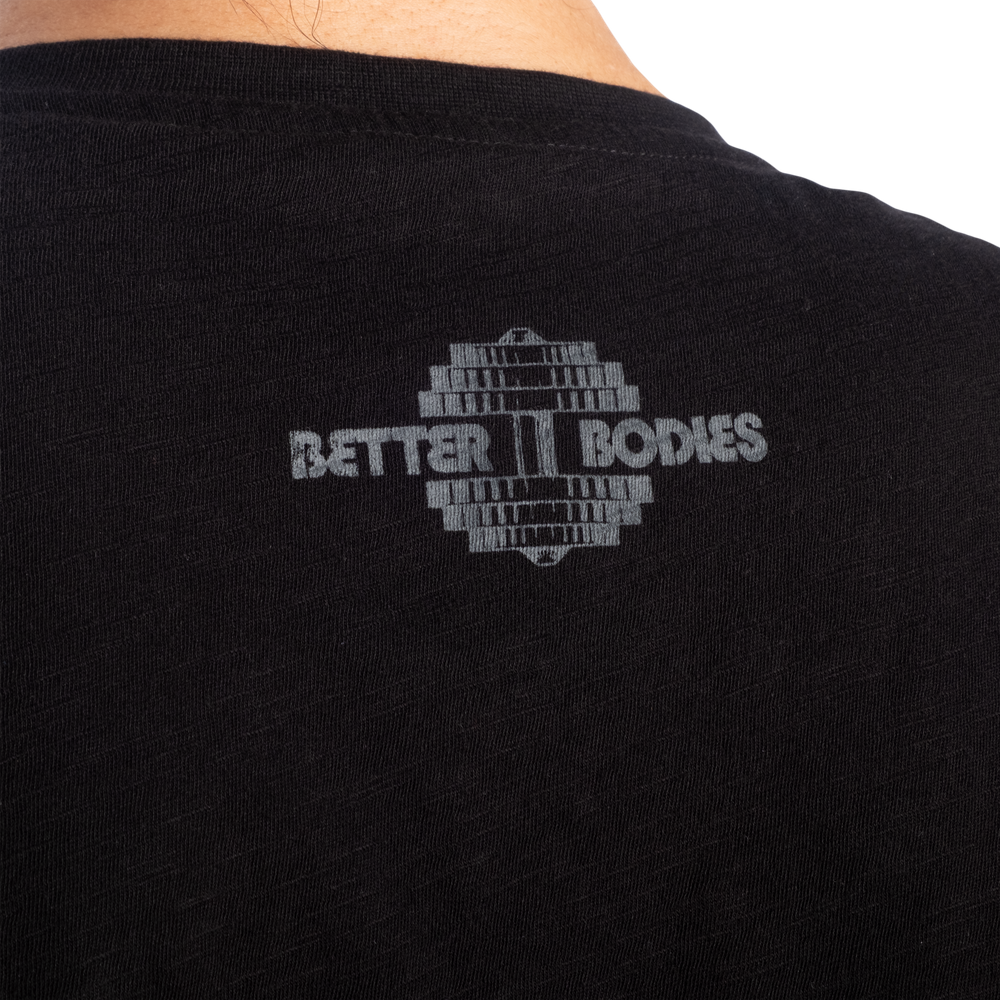 切りっぱなしのクロップド丈とゆったりとしたリラックスフィットでお気に入りのBetter Bodiesレギンス、ショートパンツ、スウェットパンツと合わせやすいデザインです。胸元にあしらわれた大胆なTRIBEプリントは共にトレーニングし、共に生き、共に刺激し合うBetter Bodiesコミュニティへの繋がりを象徴しています。小さなBetter背面のBodiesロゴプリントがルックを完成させます。