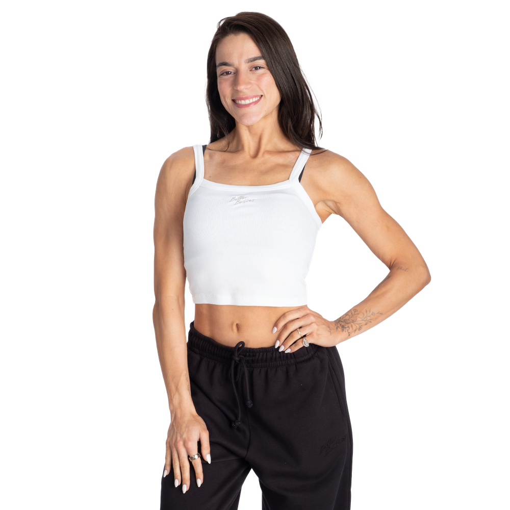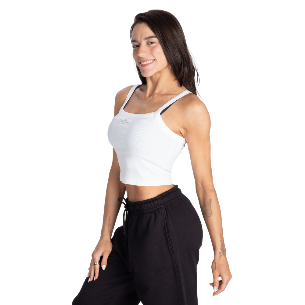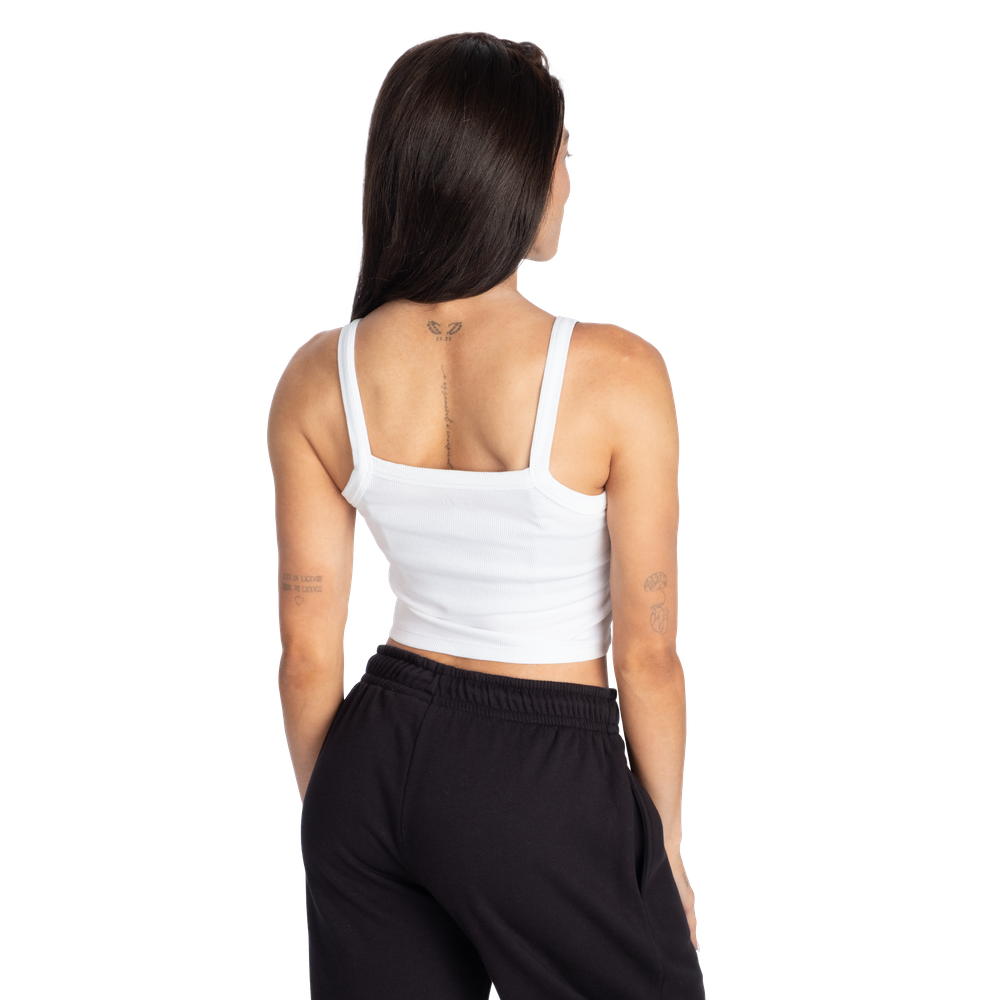 リブ ウィメンズ タンクトップはどんなシーンにも活躍する万能なアイテムです。柔らかなリブ素材と程よいストレッチ性で動きに合わせて快適なスリムフィットを実現。クロップド丈と繊細なショルダーストラップが美しいシルエットを演出し胸元の小さな刺繍がさりげないアクセントになっています。