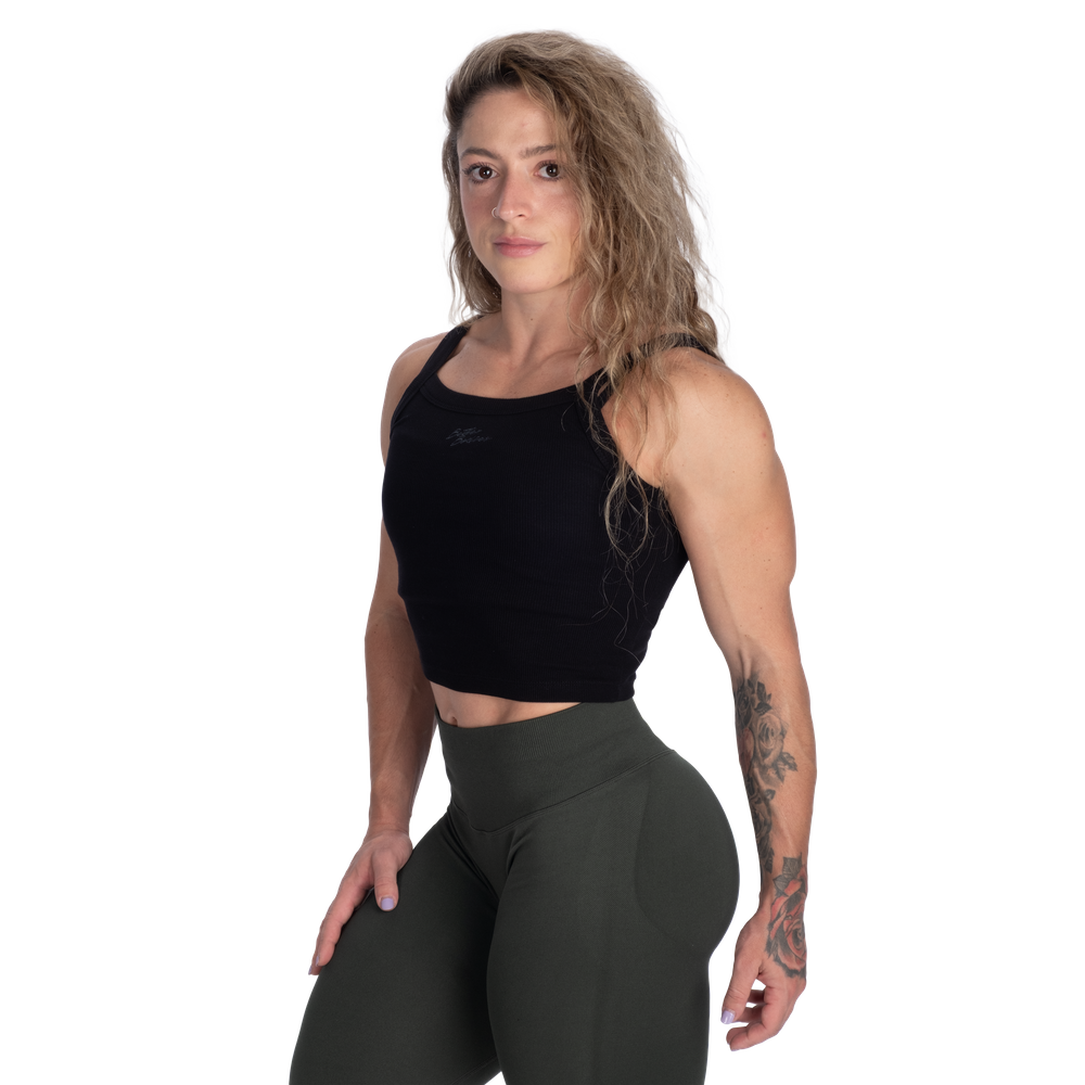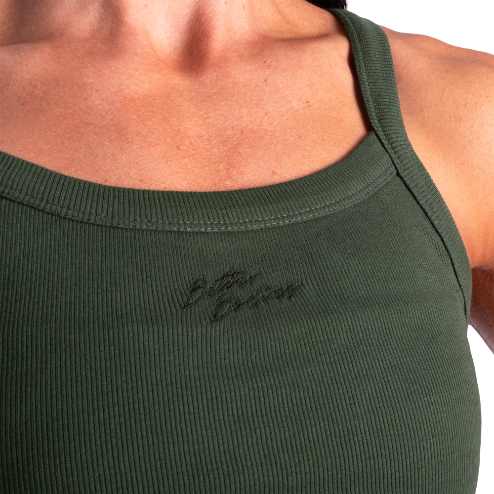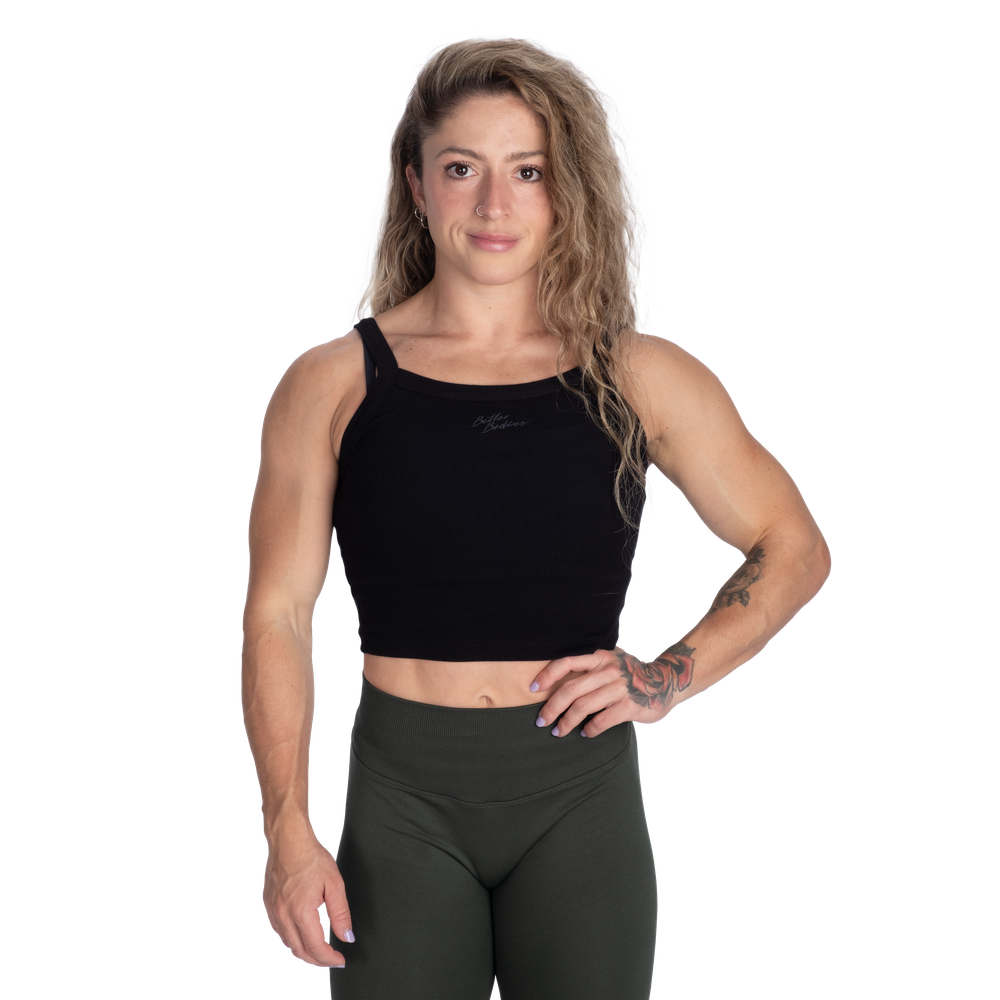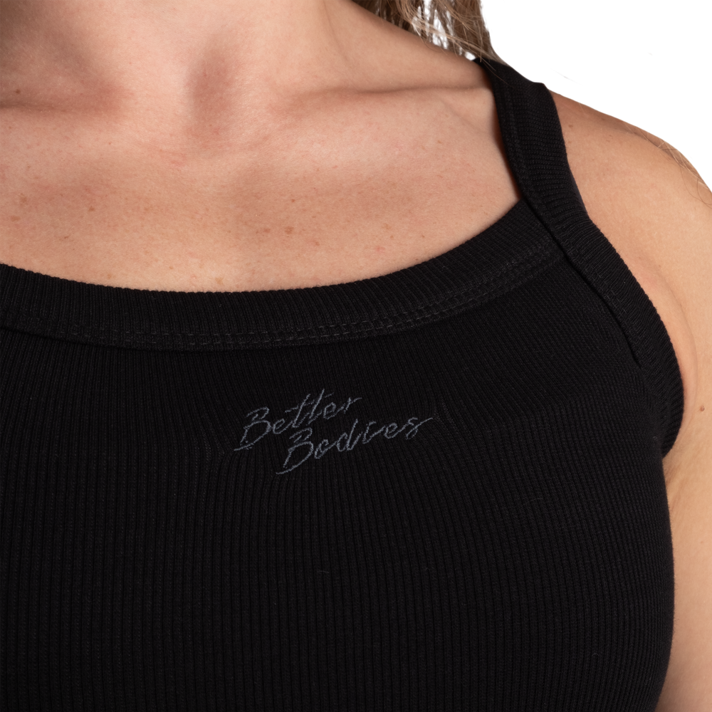 リブ ウィメンズ タンクトップはどんなシーンにも活躍する万能なアイテムです。柔らかなリブ素材と程よいストレッチ性で動きに合わせて快適なスリムフィットを実現。クロップド丈と繊細なショルダーストラップが美しいシルエットを演出し胸元の小さな刺繍がさりげないアクセントになっています。