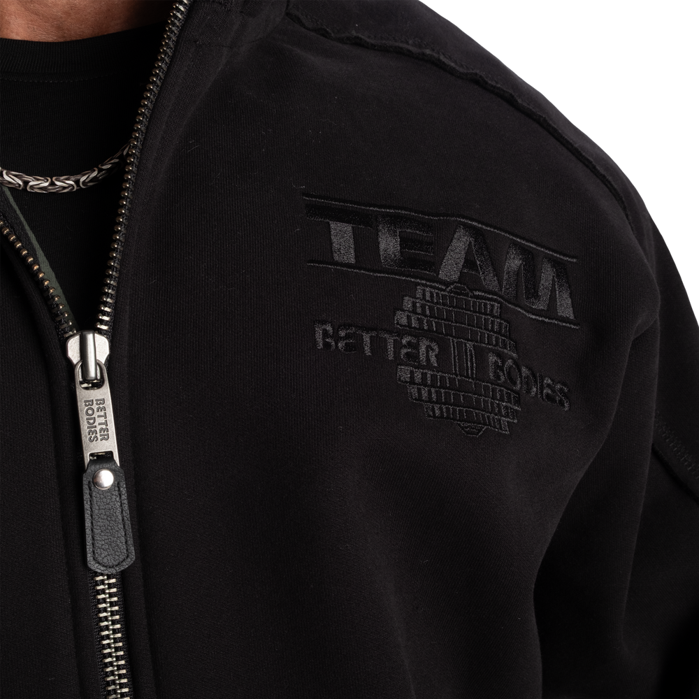 特徴:襟と袖口にリブ、フード、胸、袖に刺繍、ハンドポケット、メタルジッパー、柔らかな起毛素材、左袖に面ファスナーパッチスペース