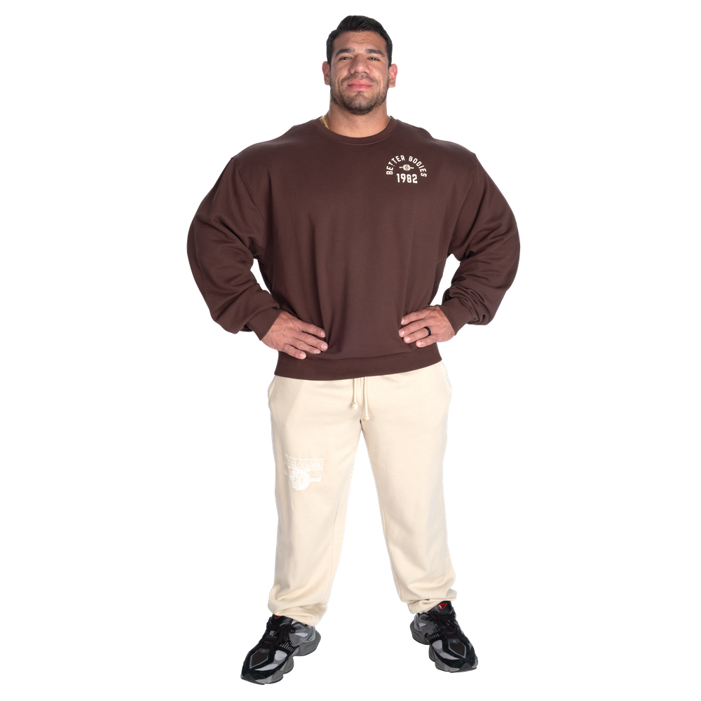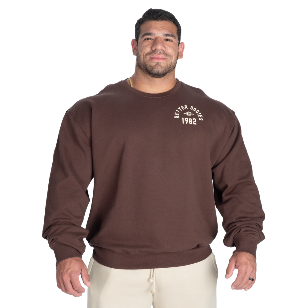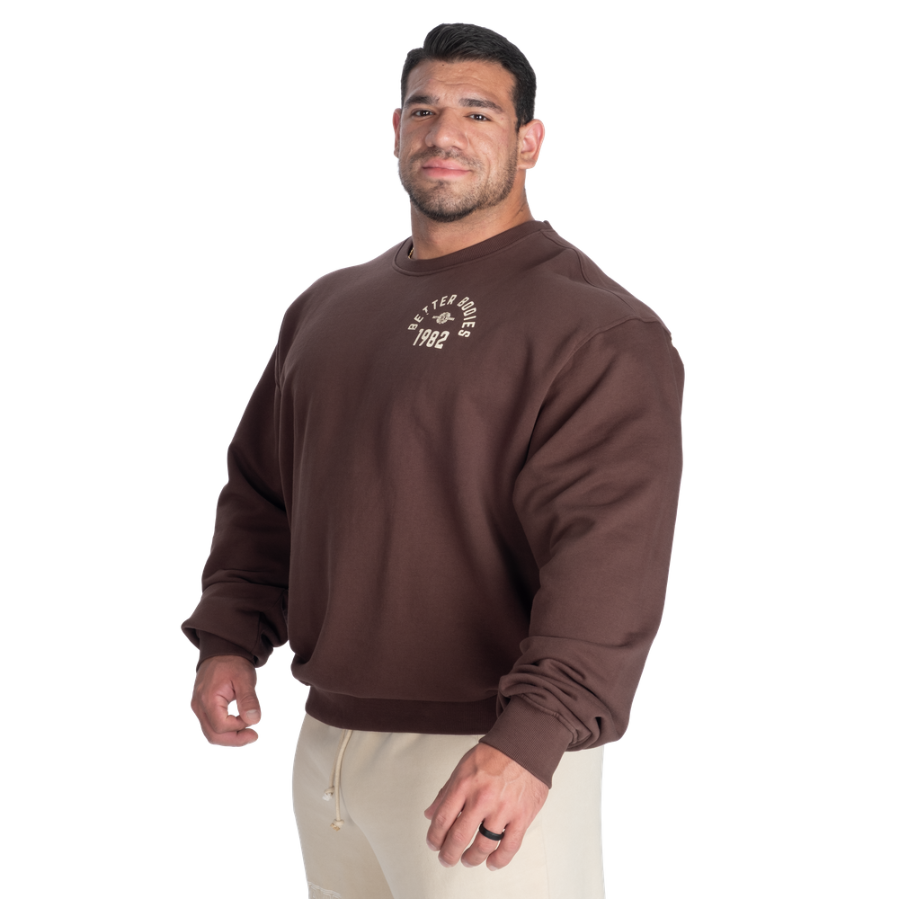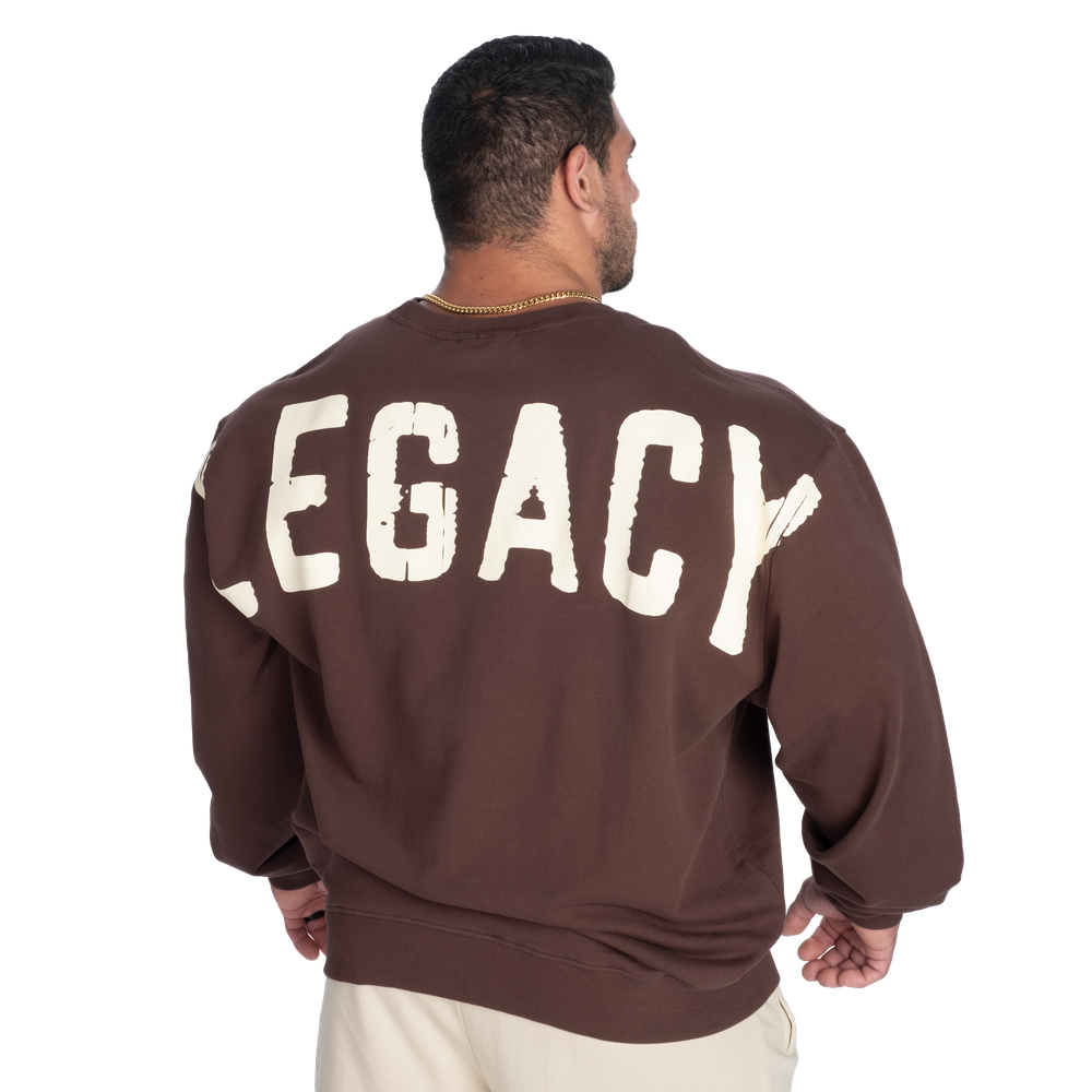 レガシー セーターはゆったりとしたフィット感でややオーバーサイズのクルーネックです。背面にヨークシームがあり、フィット感を高めています。また、裾と袖のリブは切りっぱなしになっています。