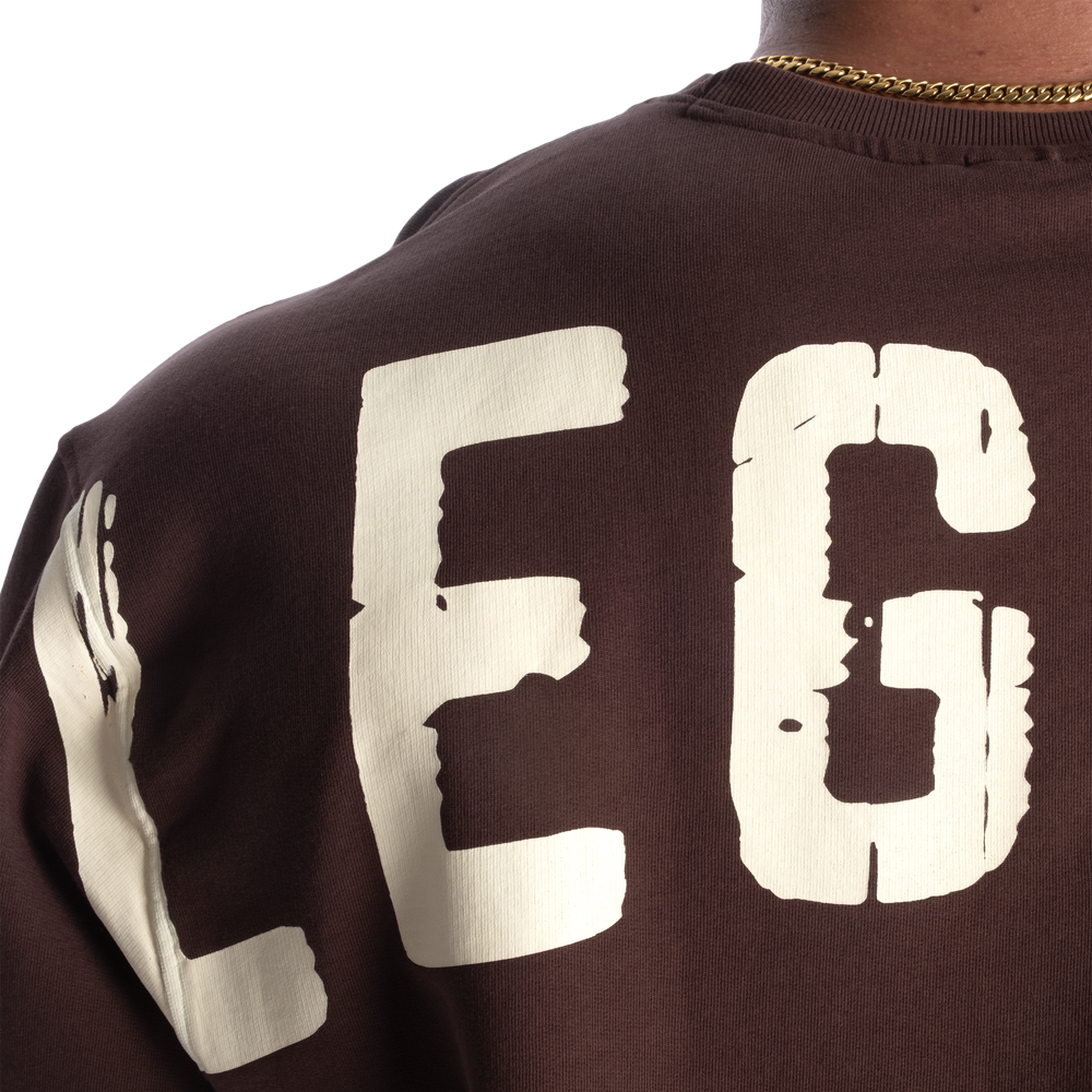 大きなレガシー プリントが肩全体に広がり、胸にも小さなプリントが施されています。