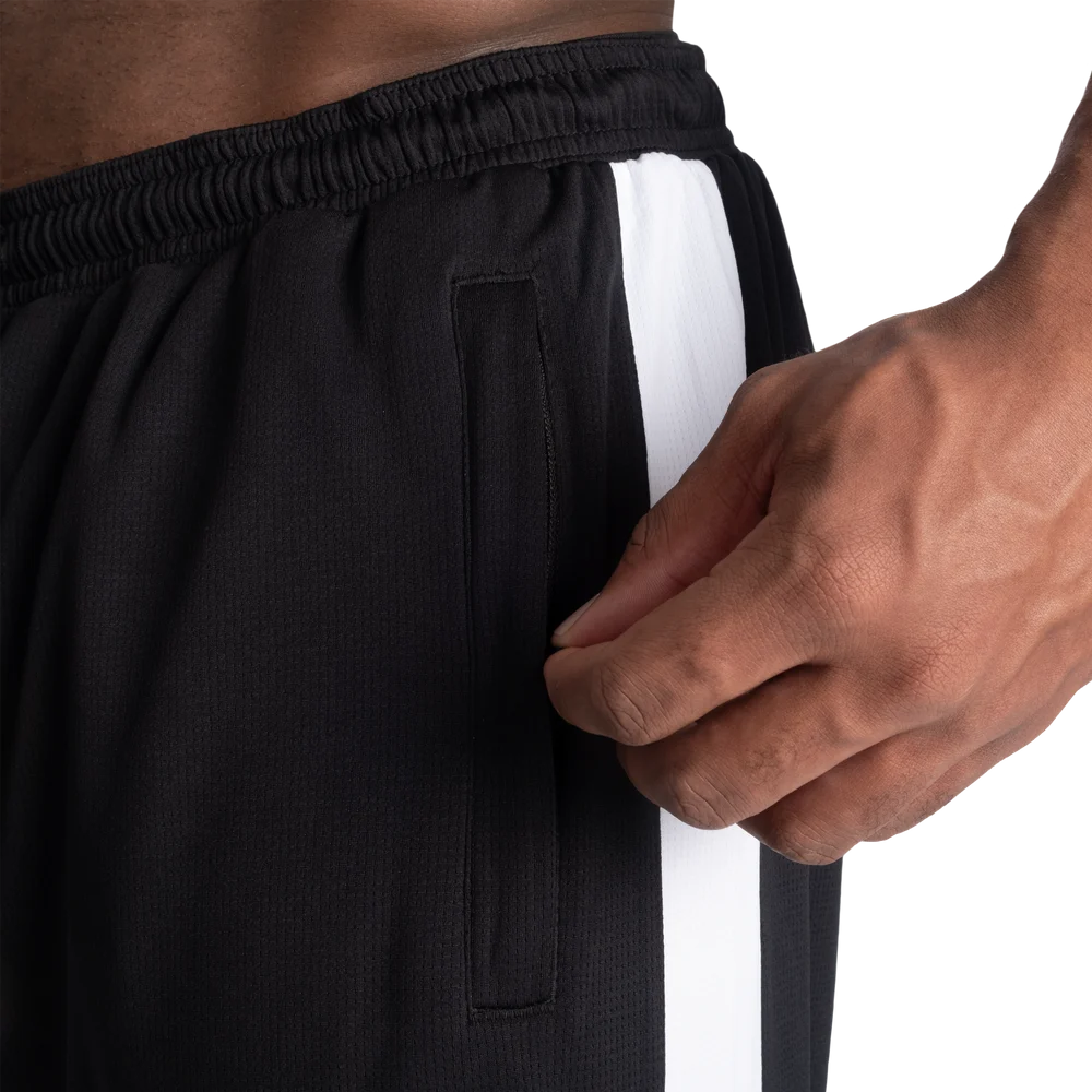 通気性に優れたメッシュ素材が優れた通気性を確保しテーパードした足首が動きを妨げることなく構造的なシルエットを実現します。ジッパー付きポケットは収納に便利で、ドローストリング付きの伸縮性のあるウエストバンドは簡単に調節できます。