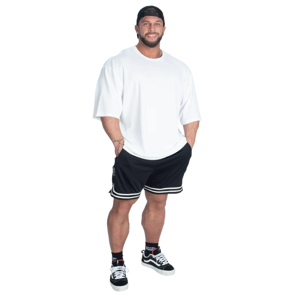 240gsmのコットンとポリエステルのサーマル混紡素材を使用し、テクスチャードな手触りと程よい重量感で一枚で着ても重ね着してもカスタマイズのベースとしても形を崩しません。ゆったりとしたフィット感のアイアンTシャツは紛れもないベターボディーズのスタイルです。肩幅は広くボディはストレートで大胆なシルエット。