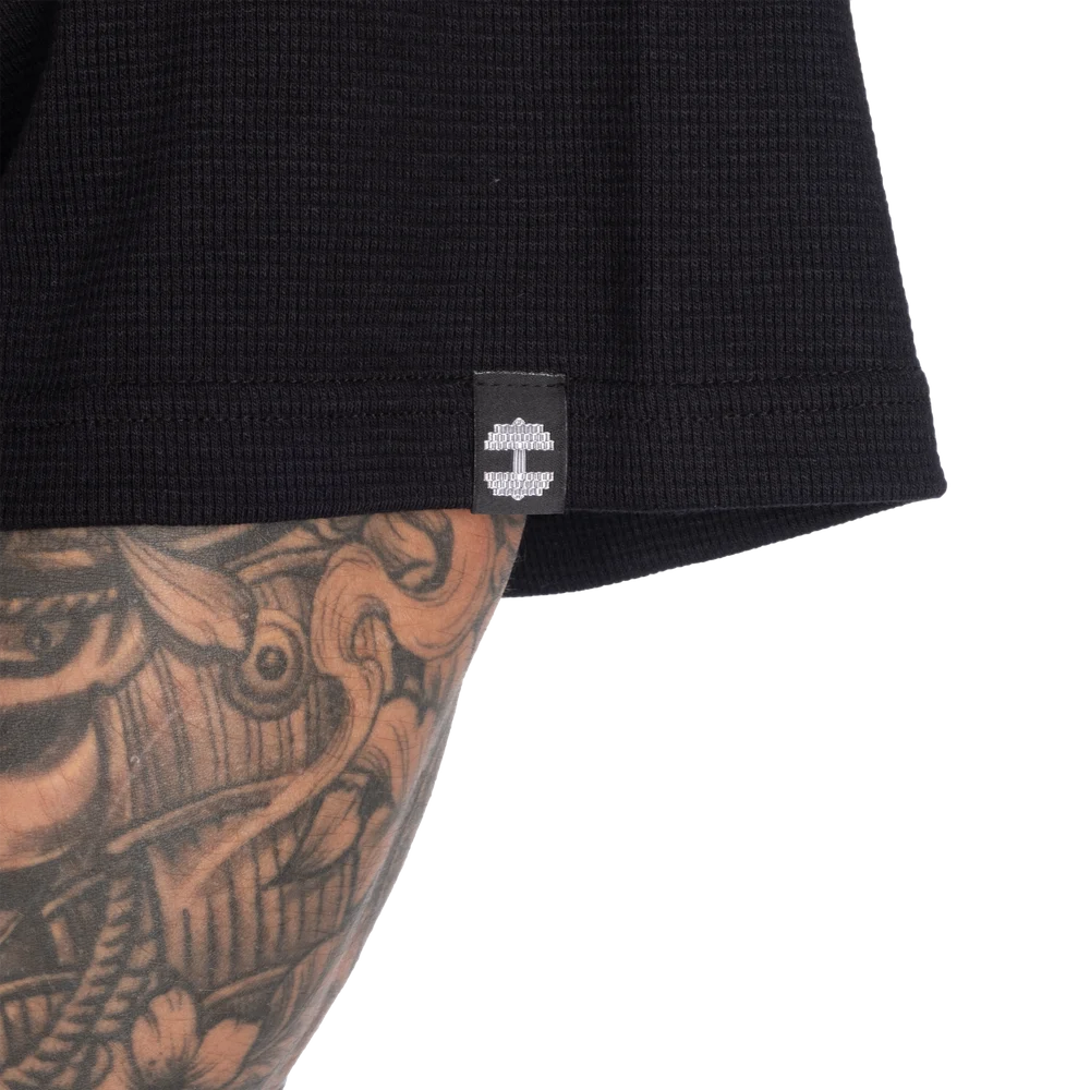 サーマルアイアンTシャツはアイコニックなアイアンTシャツのシルエットをベースに軽量なサーマル生地でアレンジすることで一年を通して多用途に着用できるデザインです。オーバーサイズでありながらクリーンで無地なデザインはシンプルさ、構造、そして自由な表現を体現しています。
