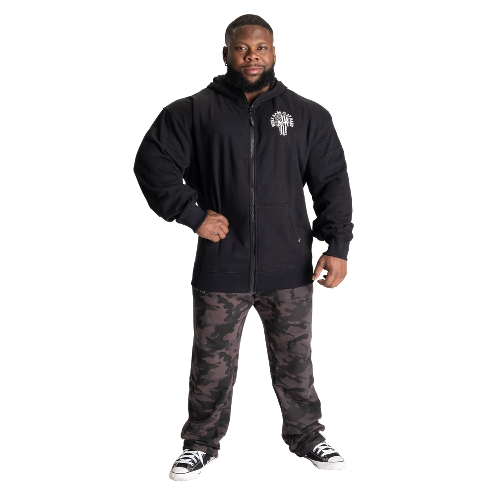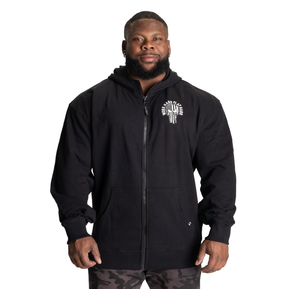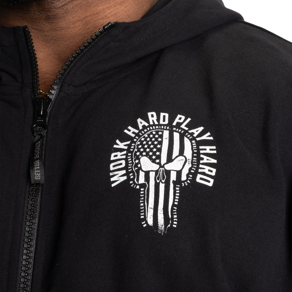 スカル・スタンダード・フーディーは、大胆な表情のクラシックなジップアップフーディーです。