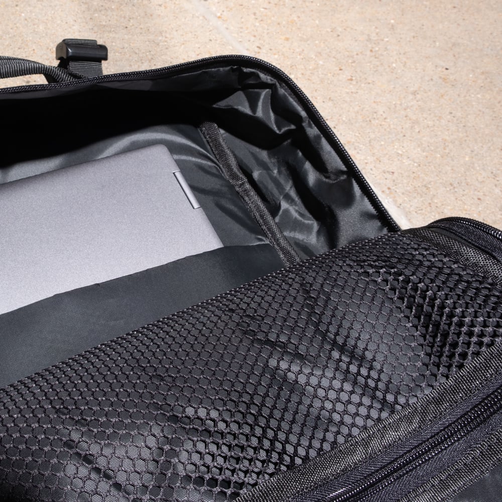 大きな外側のポケットにはベターボディーズレガシーのプリントとすぐにアクセスできるメッシュポケットが付いています。パッド入りのラップトップスリーブが2つ付いており、大切なデバイスを保護します。ドローストリング付きのサイドボトルホルダーは水分補給をしっかり守ります。