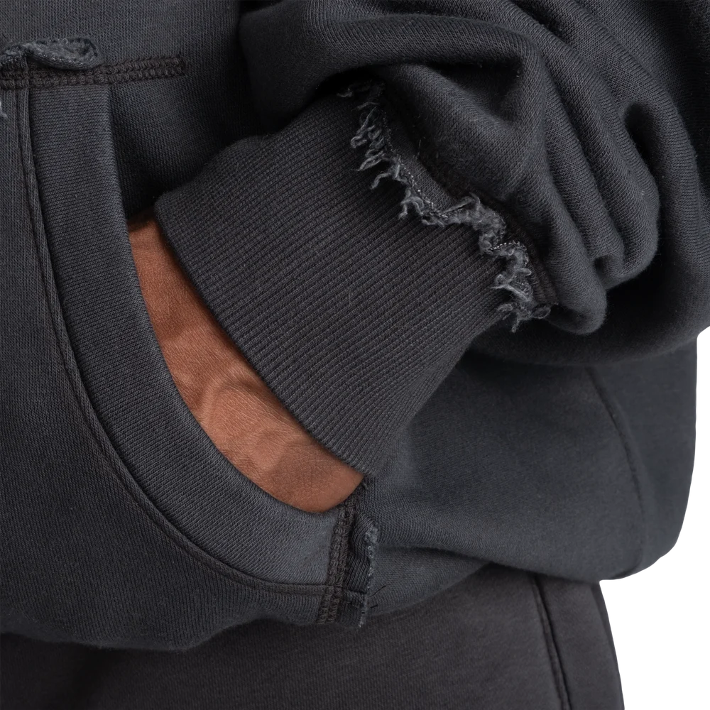 特徴:オーバーサイズフィット、柔らかな手触りのウォッシュ加工コットン/ポリエステル素材、裏起毛、カンガルーポケット。