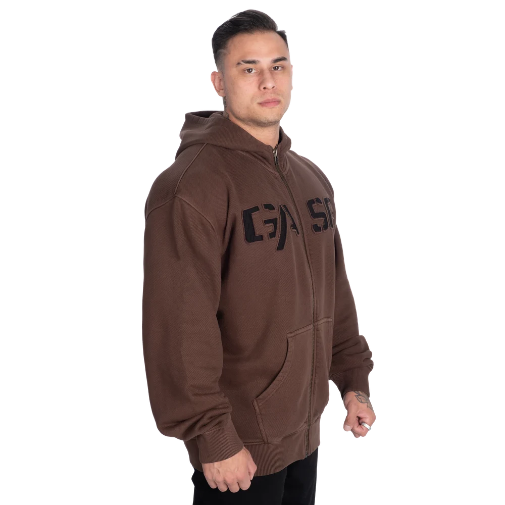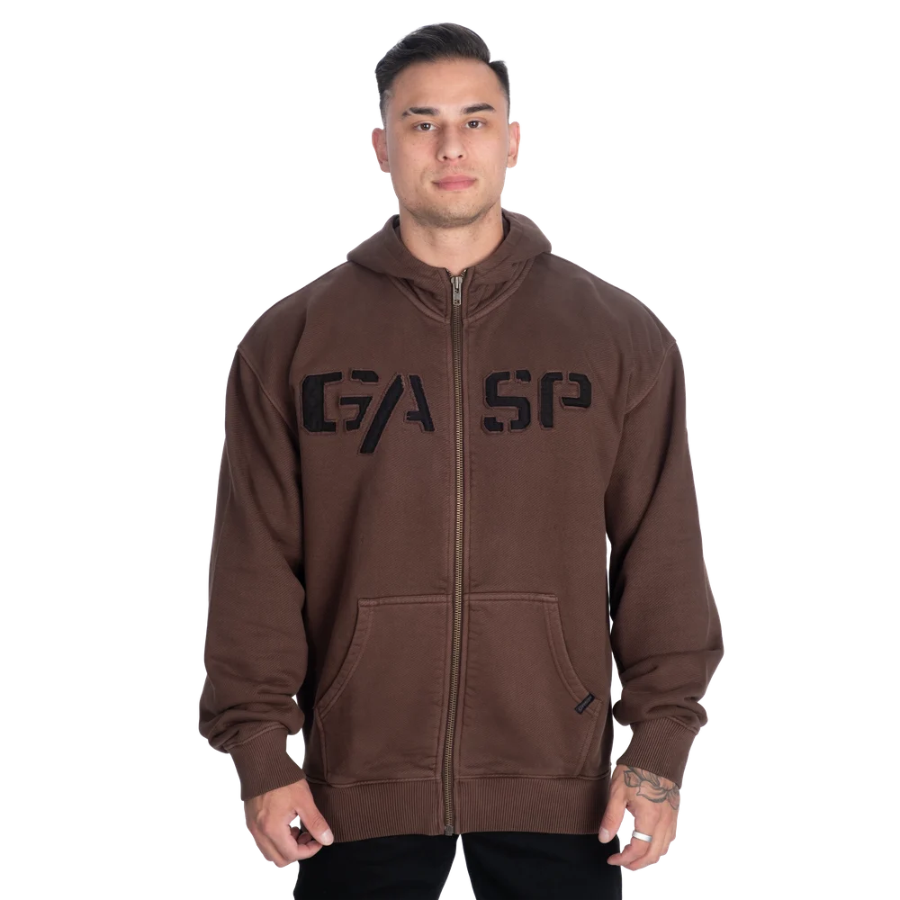ヘビーデューティージッパーを採用したクラシックなジップフーディーはジャケットとしても、ーディーとしても活躍します。しっかりとした構造が保温性と耐久性を提供しフロントのGASPロゴがブランドの伝統を忠実に受け継いだクリーンな印象を演出します。本物の昔ながらの雰囲気を持つ実用的なレイヤーで何シーズンにもわたって着回せるように作られています。