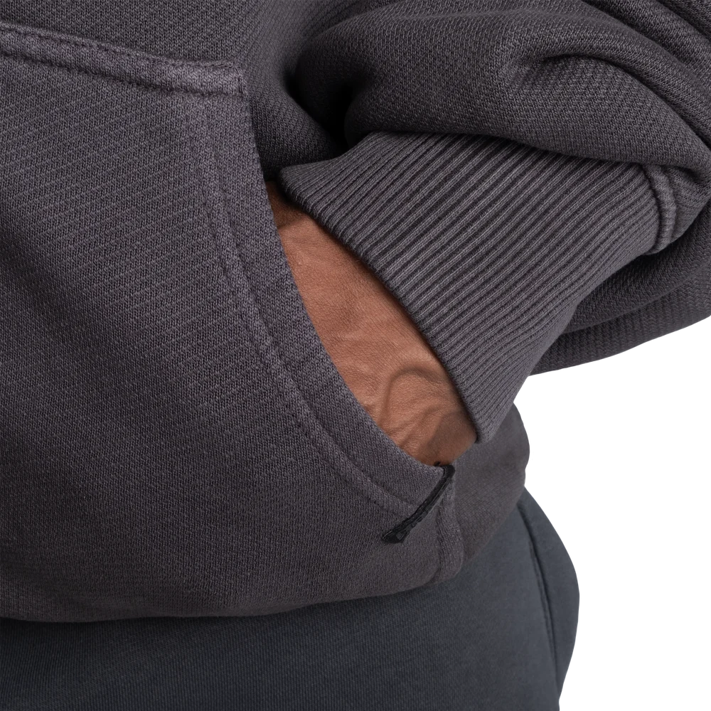 重量感、しっかりとした作り、そして紛れもないオールドスクールな雰囲気を好む方のためにデザインされたヘビークラシックフーディー。570gsmの3本糸クロスループフリースを使用した100%コットン製でしっかりとした上質な風合いが特徴。普段使いや寒い日にも耐えうる耐久性を備えています。ガーメントダイとバイオウォッシュ加工が施されているため使い込むほどに風合いが増しクタクタになったような風合いが生まれます。