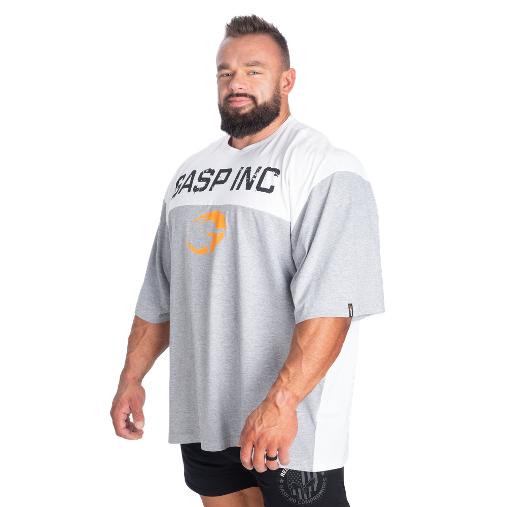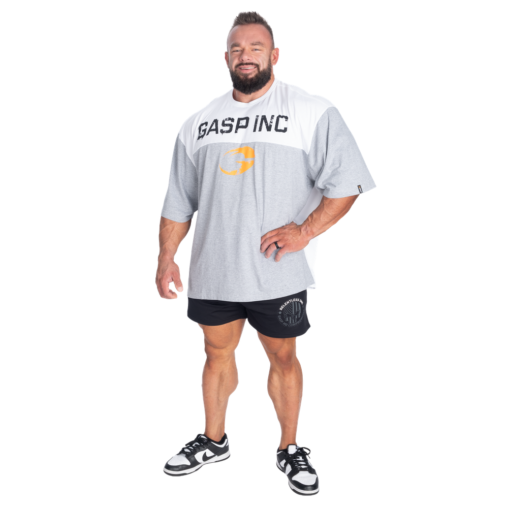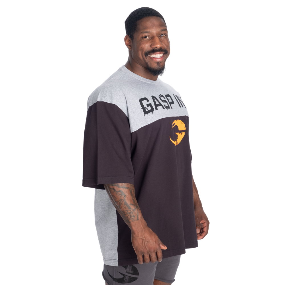 2カラーアイアンTはGASPの象徴的なスタイルの一つをアイアンTプラットフォームに取り入れた一着です。ラフでしっかりとした風合いの厚手のコットン生地を使用しあらゆるセットに対応し、GASPの象徴的なスタイルを表現できる耐久性の高いTシャツを求めるリフターのためにデザインされています。